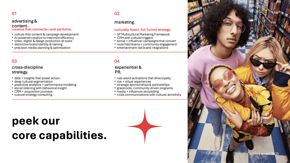 infusion by castells is a nationally recognized multicultural agency in both la and nyc. it is also where i first found my place in the creative world as an art director, as i worked there from 2023-2025, advancing from junior to associate art director in less than 2 years. this was one of the many pitch decks i designed in my time there, with this one acting as a rebranding deck to utilitize for client outreach.